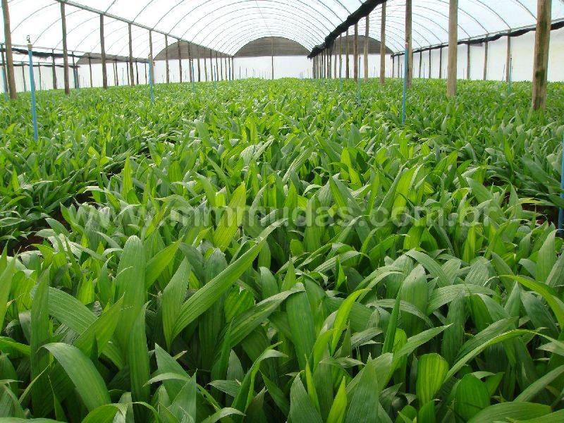 Touceira com perfilhos em diferentes estágios de crescimento. O maior já no ponto de corte